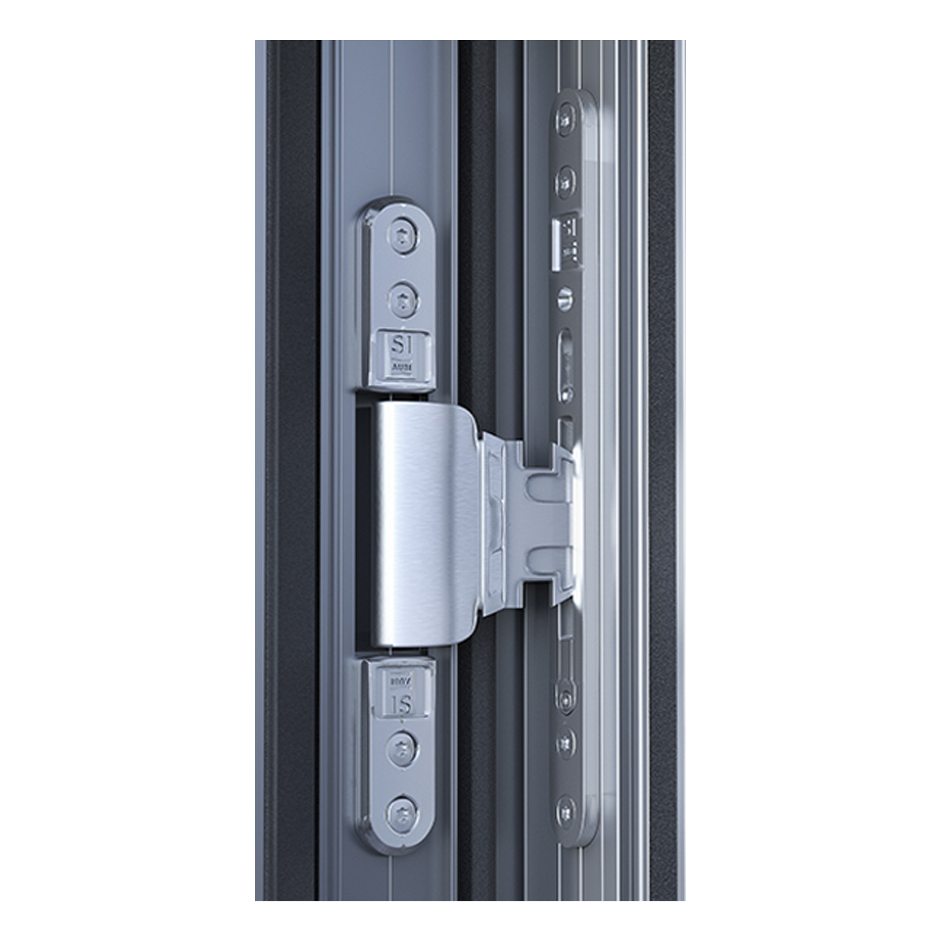 Heavy-duty hinge of high specifications with three-way adjustment for optimal door performance. Maximum weight capacity of 160 kg using 2 hinges.