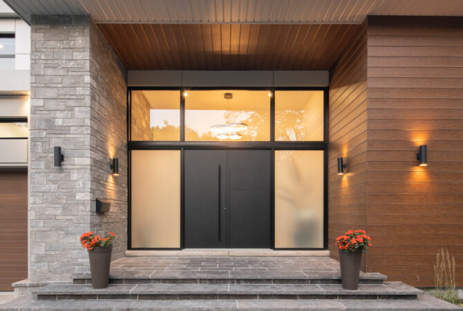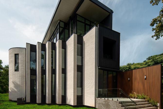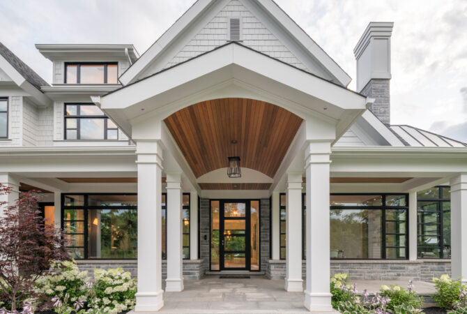 Η εξοχική κατοικία έχει μια εντυπωσιακή αρχιτεκτονική δομή, με πολλά μεγάλα ανοίγματα, που ακολουθούν έναν ιδιαίτερο αρχιτεκτονικό ρυθμό. Η απόλυτη αρμονία με το λευκό χρώμα που κυριαρχεί τόσο στο εσωτερικό όσο και στο εξωτερικό του κτιρίου, δημιουργεί μια εκλεπτυσμένη αισθητική. Η πόρτα εισόδου πέρα από κομψότητα προσφέρει υψηλή εξοικονόμηση ενέργειας…